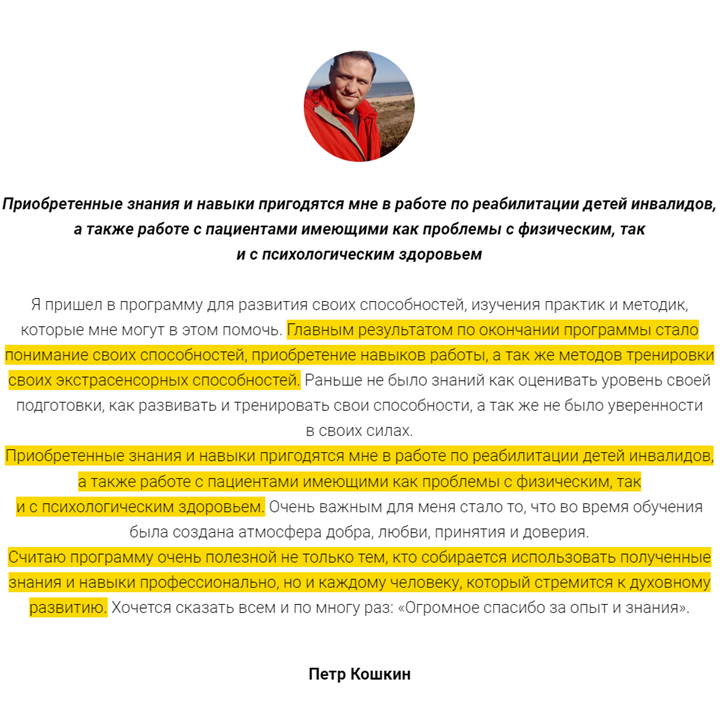 - Автор интегральной технологии по раскрытию экстрасенсорных способностей «ИТРЭС»